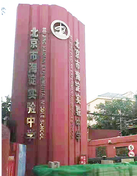 北京市海淀實驗中學由原阜成路中學(航天橋附近)和122中學(車道溝附近)合并組成。2000年與北京八中合作辦學。從此,無論管理與教學,都以重點中學的模式進行運作,學生屢屢在市區(qū)乃至全國學科競賽中獲獎。